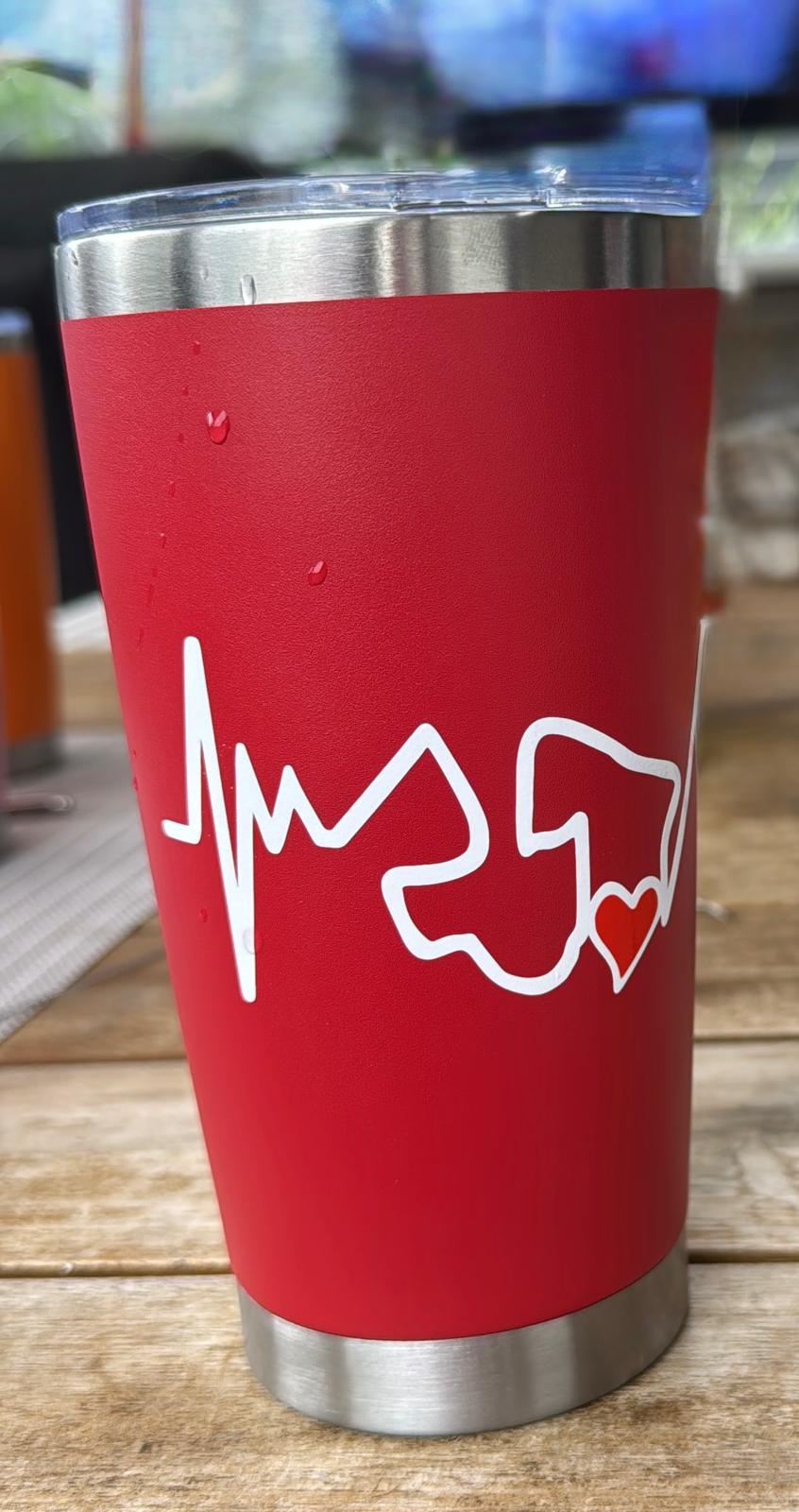 Thermobecher mit der Herzschlaglinie für Butjadingen veredelt